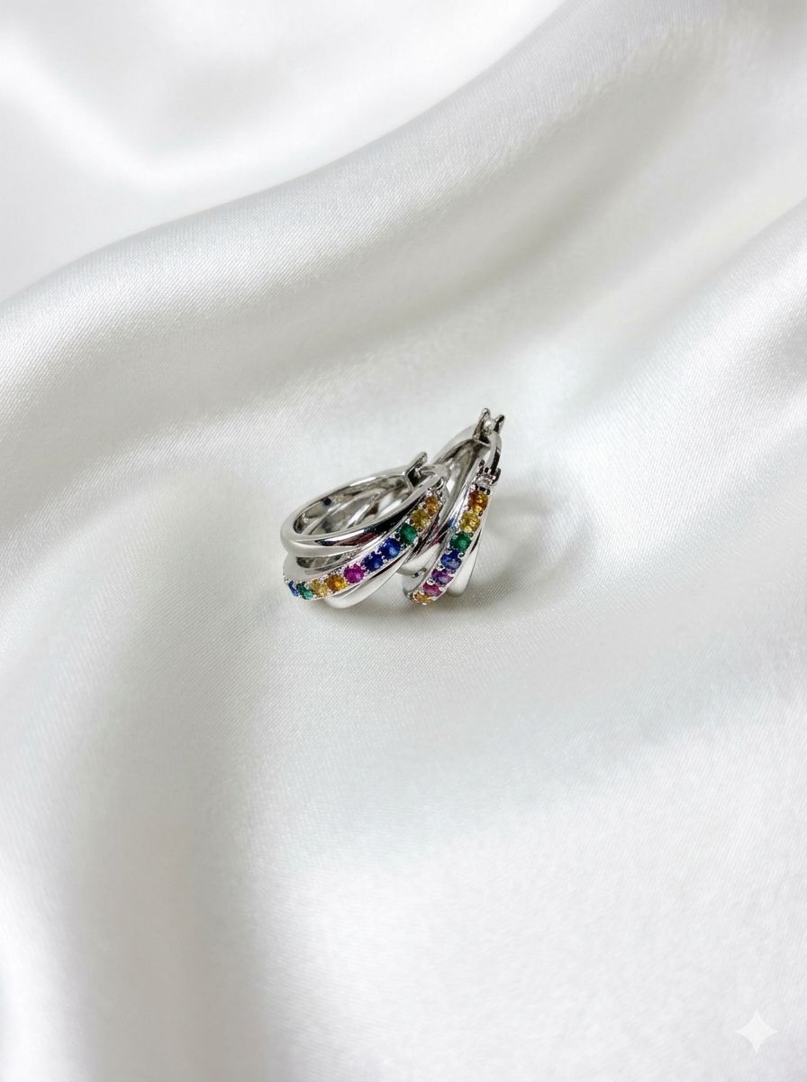 Boucles d’Oreilles Elyra 7 Chakras en Argent 925 | Créoles Multicolores Bien-Être