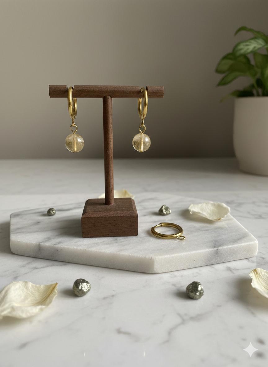 Apportez une touche de lumière Ă votre visage avec ces Ă©lĂ©gantes boucles d’oreilles en citrine naturelle. Conçues en acier inoxydable dorĂ©, ces crĂ©oles avec perles suspendues allient durabilitĂ© et Ă©clat solaire.