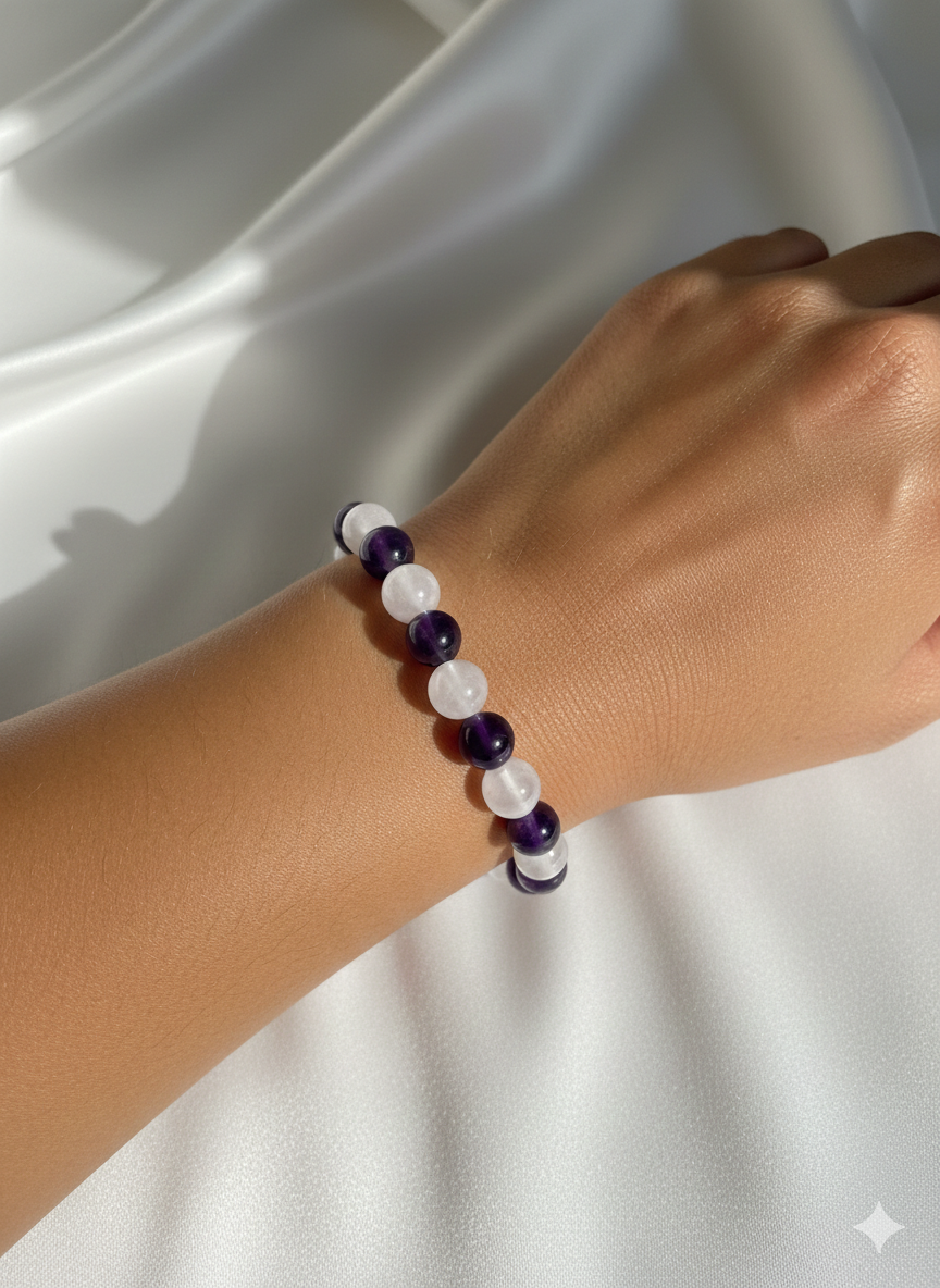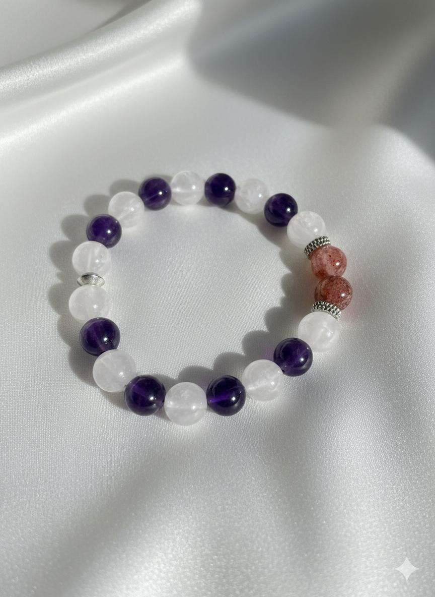 • Améthyste : Pierre de sérénité, elle apaise les tensions et transforme le stress en calme protecteur.
