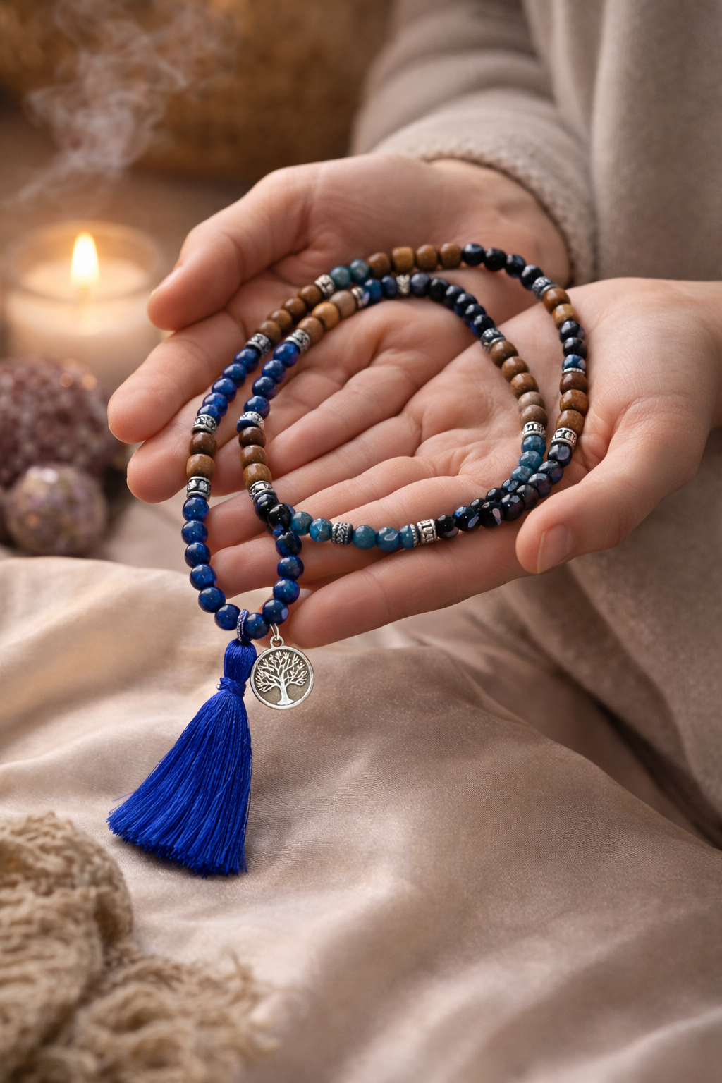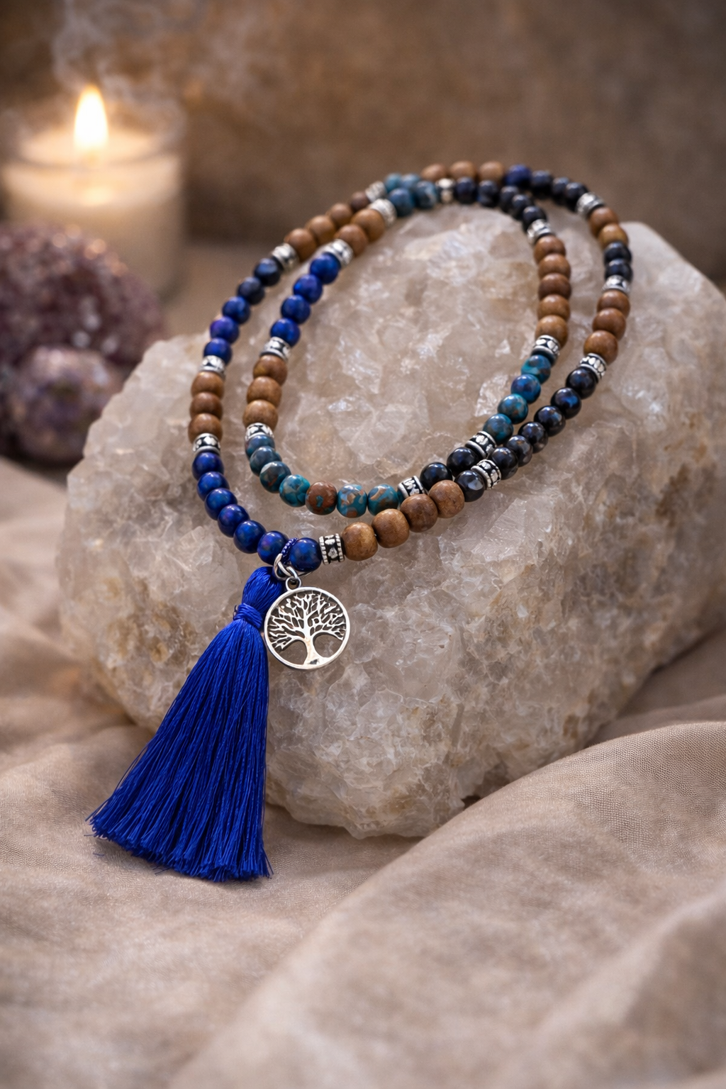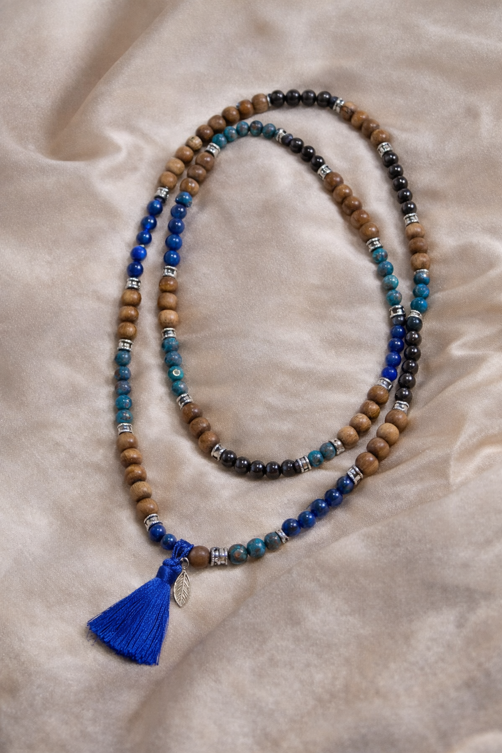 Mala Forêt Intérieure – Lapis-lazuli, Turquoise d’Afrique, Grenat & Bois sacré