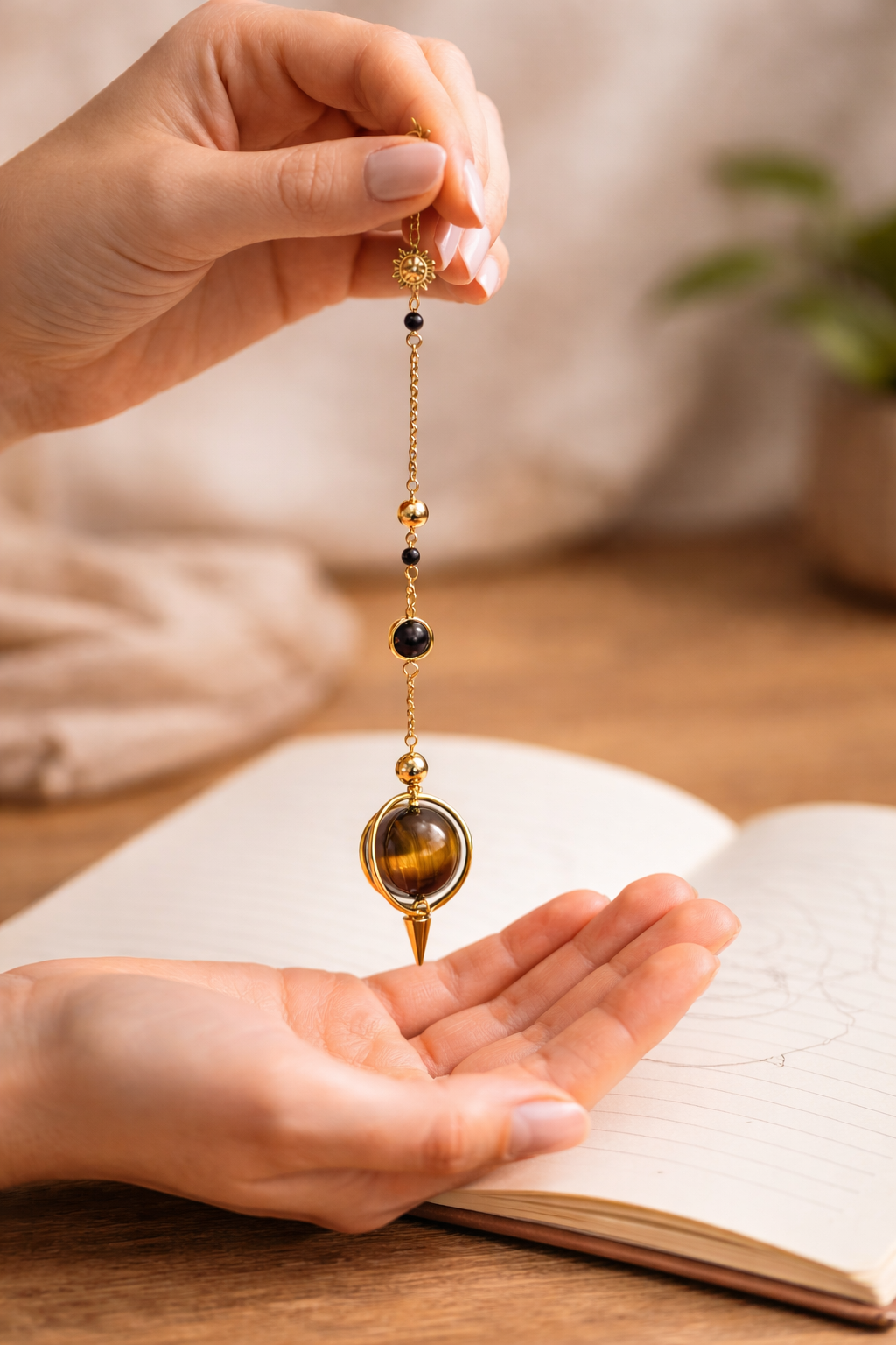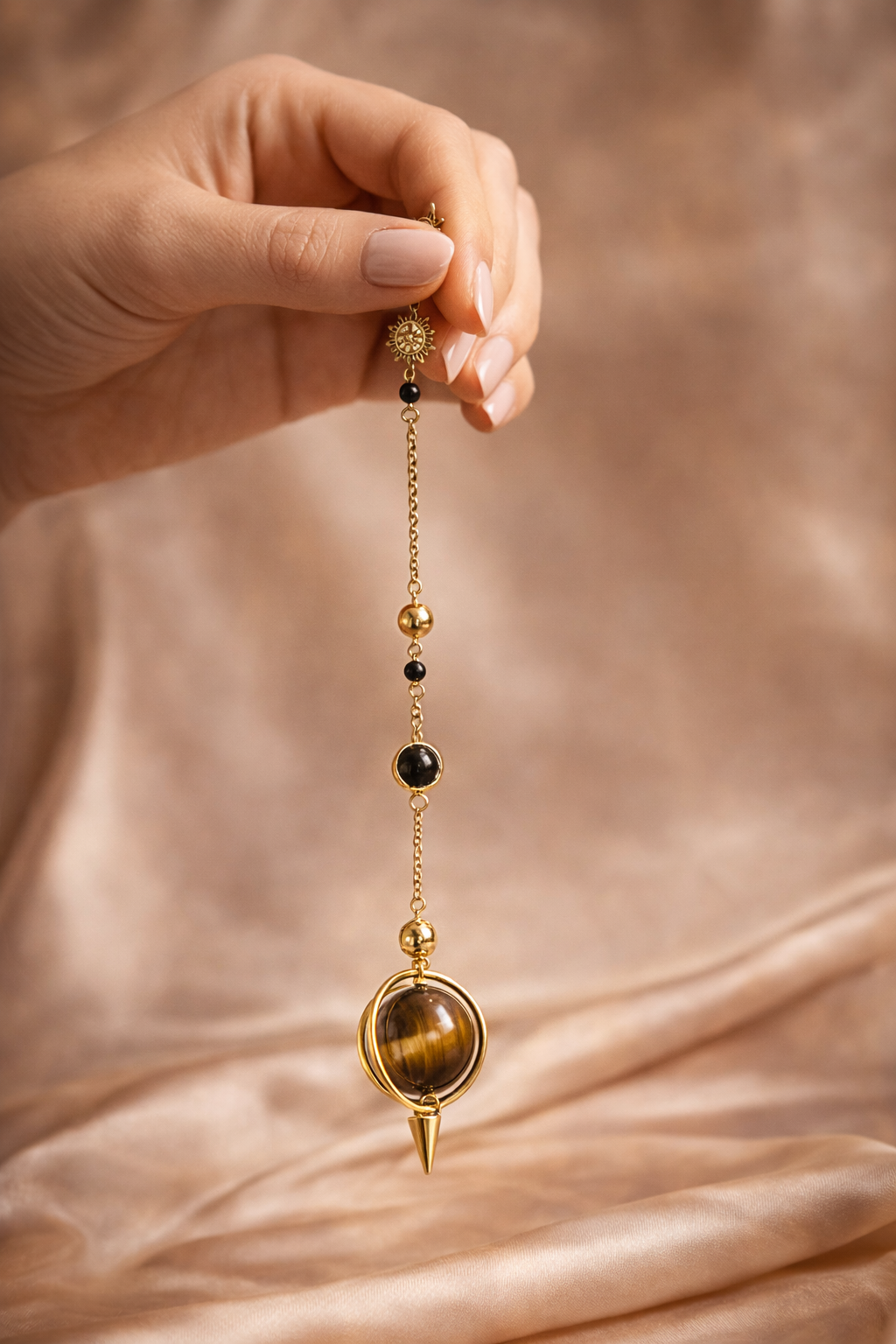 Pendule divinatoire en Œil de Tigre – Élégance & Précision